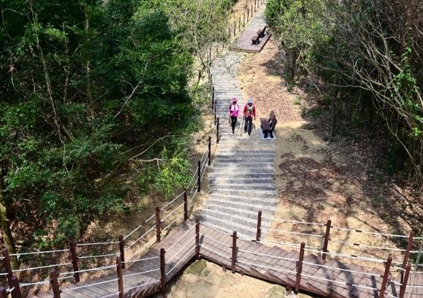步道長度: 雖然地圖寫1.2-1.5公里感覺不長,但相信我,爬完你會覺得不只! 主要是因為階梯真的不少,一步一階往上抬腿,肌肉的疲勞感會讓距離感變長。