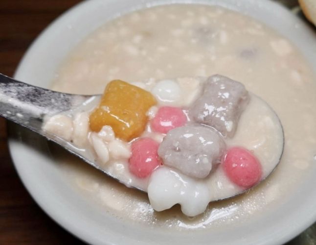 介紹: 吃完鹹的,該來點甜的涼的!這家是老字號,在 復興市場 賣了幾十年。主打就是純手工製作的 古早味杏仁露!顏色是天然的米白色,不是那種死白的化學色。杏仁味香濃但不刺鼻,口感滑順細膩,甜度適中,非常消暑解膩。冬天也有熱的可以喝。除了杏仁露,他們的傳統冰品也很棒,像是米苔目、粉粿、綠豆、紅豆等配料,糖水也不會死甜。夏天來一碗綜合冰加一勺杏仁露,完美!這攤永遠是我的 復興市場 甜點完美句點。